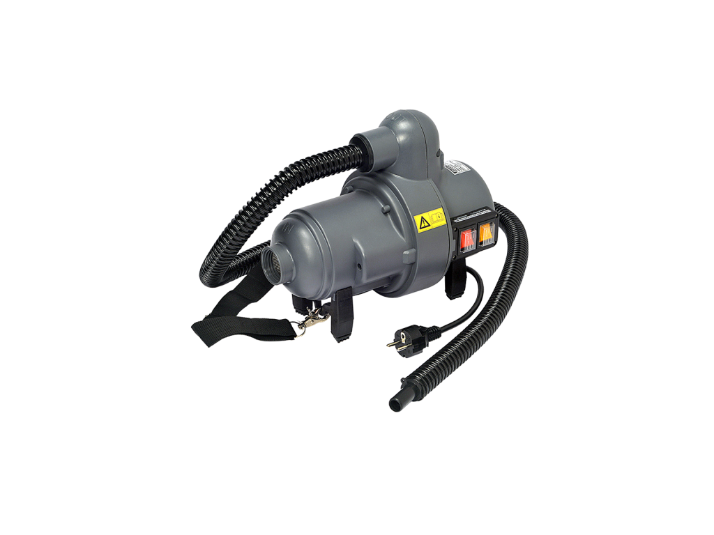 Dúchadlo je vybavené výkonným elektromotorom s príkonom2000 W, ktorý je napájaný štandardným sieťovým napätím 230 V. Telo zariadenia je vyrobené z vysoko odolného plastu, ktorý chráni vnútorné komponenty pred mechanickým poškodením. Zariadenie je vybavené funkciou nafukovania aj vypúšťania vzduchu, čo je neoceniteľné pri balení lodí, keď potrebujete vysať všetok vzduch, aby ste dosiahli minimálny prepravný objem. Integrovaná ochrana proti prehriatiu zaručuje dlhú životnosť motora aj pri dlhšej nepretržitej prevádzke. Súčasťou balenia je flexibilná hadica a sada adaptérov, ktoré sú kompatibilné s väčšinou bežne používaných ventilov na trhu.