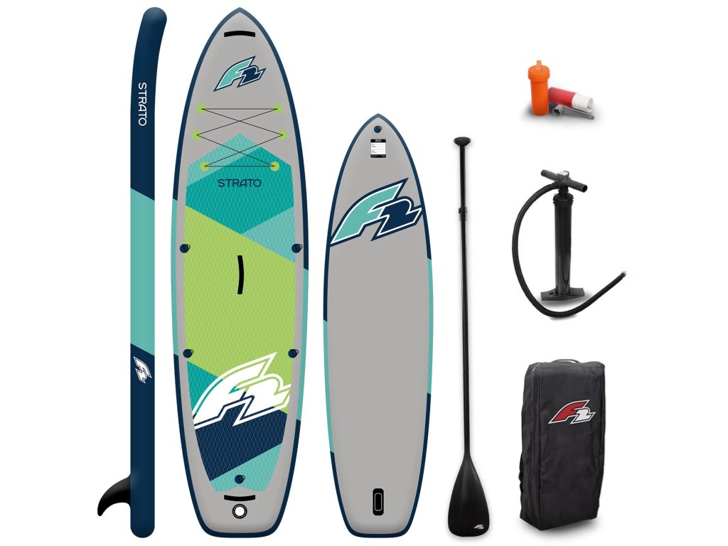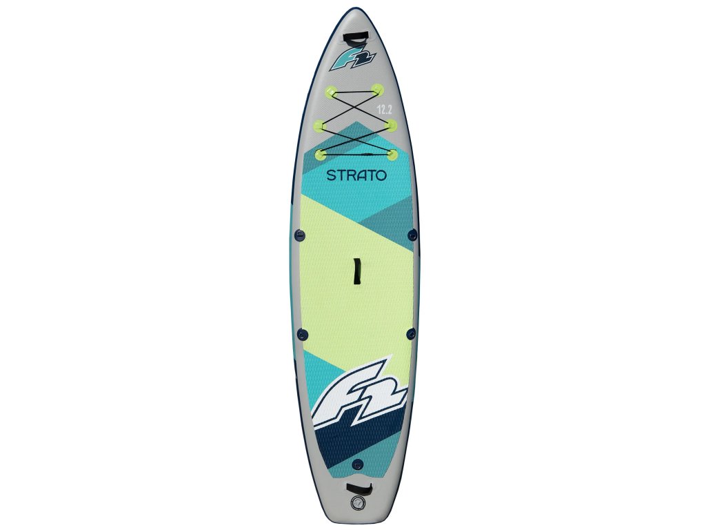 F2 Strato 12'2 Green je jedným z veľkých rodinných plavákov, ktoré vďaka svojej veľkosti a tvaru ponúkajú vynikajúcu stabilitu a pohodlie. Dĺžka 372 cm umožňuje dobrý sklz a sledovanie, zatiaľ čo šírka 86 cm dáva istotu aj úplným začiatočníkom. Nosnosť až 180 kg umožňuje použitie pre jedného veľkého jazdca alebo aj spolu s dieťaťom či menším pasažierom. Okrem toho je možné plavák vybaviť kajakárskym sedadlom a používať ho aj v sede.