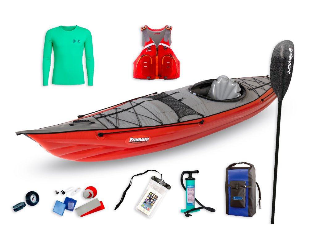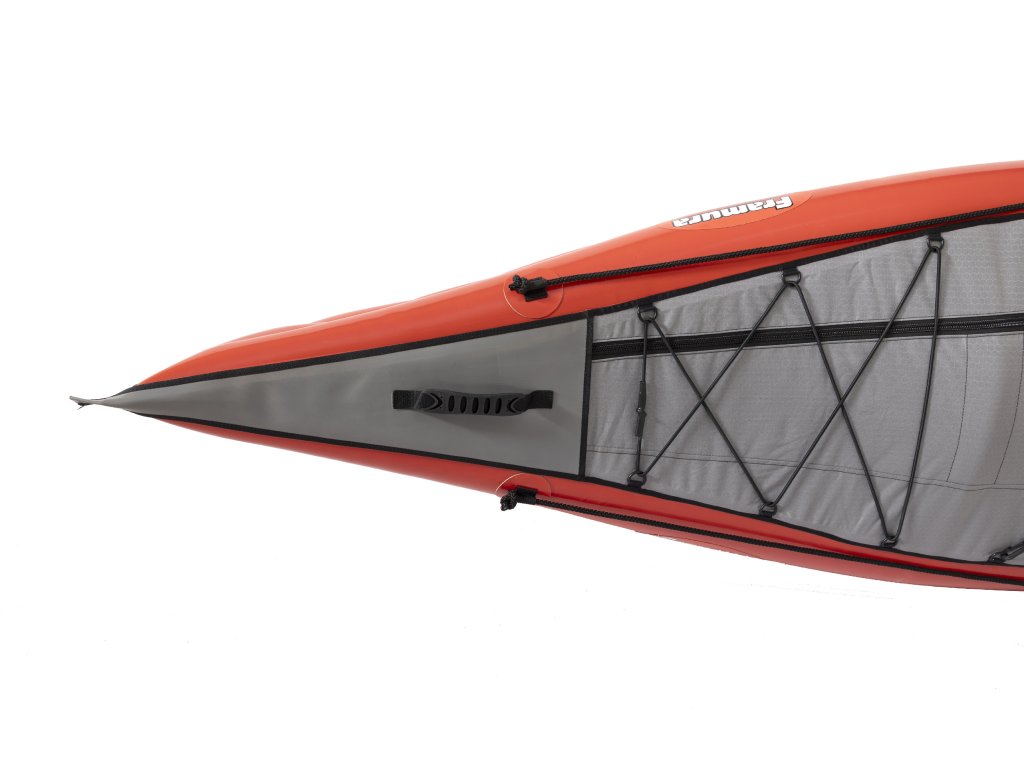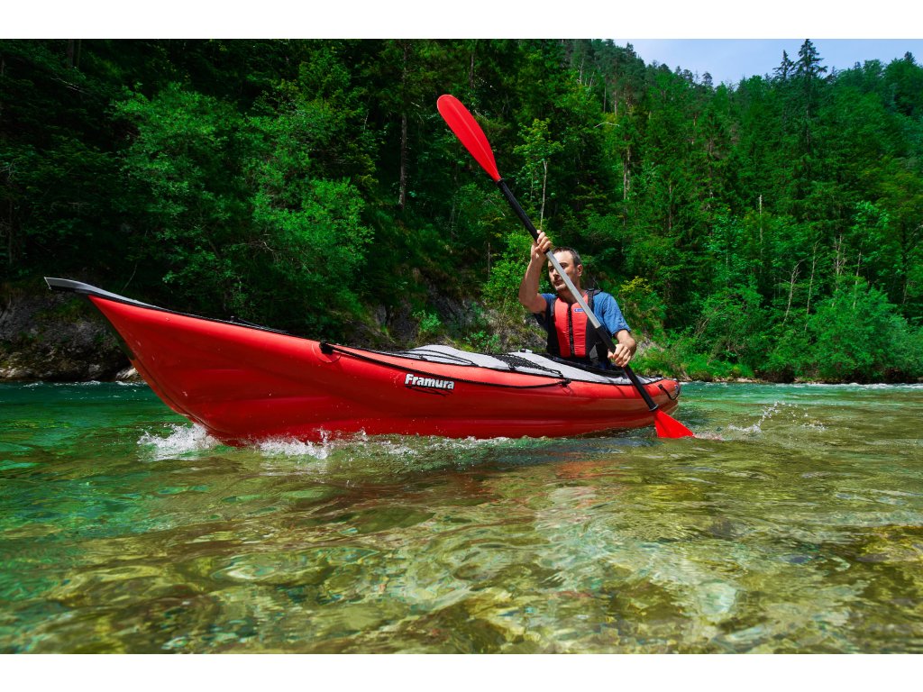 Framura (410 × 75 cm, 16 kg, nosnosť 180 kg) je najvýkonnejší kajak značky Gumotex, určený na turistiku a výlety po pokojných riekach, jazerách alebo pobreží. Vďaka pevnému neodnímateľnému kokpitu s PUR poťahom, trojvrstvovému trupu a výške smerového kýlu udržiava smer aj počas dlhších úsekov. Má tri hlavné a dva pomocné priestory na zaistenie bezpečnosti. Hodnotený (vo Francúzsku alebo USA) ako "najrýchlejší nafukovací čln" s dojazdom do 12 km/h a dobrým vedením kurzu