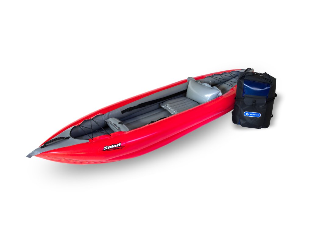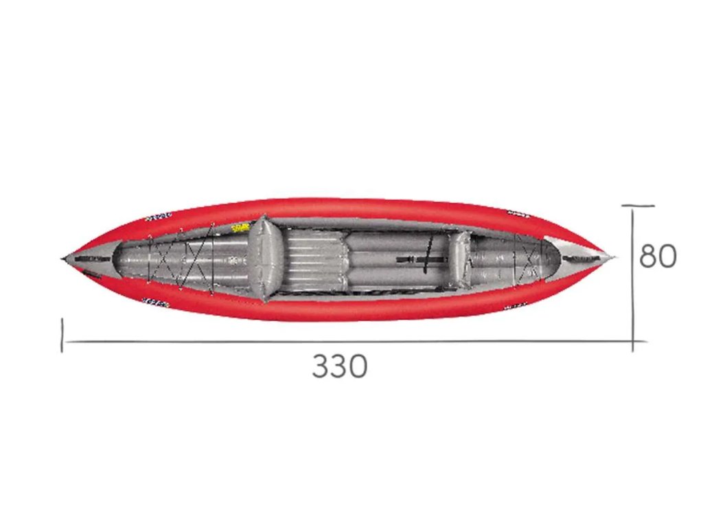 Safari 330 (330 × 80 cm, 12 kg, nosnosť 130 kg) je univerzálny nafukovací kajak, ktorý sa nebojí väčšej vody. Vďaka samospádovému dnu, tvarovanému trupu a prvkom zameraným na stabilitu a kontrolu pri pohybe zvládne jazdu na WW3, surfovanie v oceánskych vlnách aj pohodovú plavbu na otvorenom mori. Vďaka nízkej hmotnosti a kvalitnému materiálu NITRILON® sa ľahko prenáša a je odolný v náročnom teréne. Tento model je ideálnou voľbou pre aktívnych vodákov, ktorí hľadajú spoľahlivý čln bez kompromisov. Na všetky člny Gumotex sa vzťahuje5 rokov záruky po registrácii.
