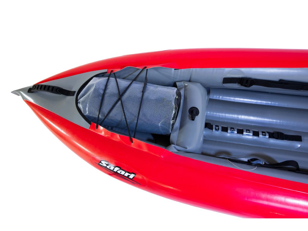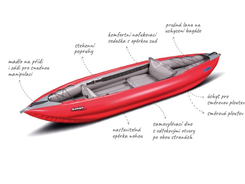 Šírka 80 cm v kombinácii s konštrukciou so šiestimi vzduchovými komorami a samovylievacím dnom zaisťuje vynikajúcu stabilitu aj v rozbúrenej vode. Odvodňovacie otvory na oboch stranách dna účinne odvádzajú vodu z lode, čo je veľmi dôležité v perejách alebo pri veľkej záťaži. Safari má tvarovaný trup s úchytom pre smerovú plutvu, ktorý zlepšuje ovládateľnosť člna v pokojnejšej vode. Konštrukcia trupu a rozloženie sedadiel umožňujú veľmi dobrú kontrolu v technických pasážach a na surfe. Kombinácia stability, ovládateľnosti a bezpečnosti robí z modelu Safari spoľahlivého partnera na vode.