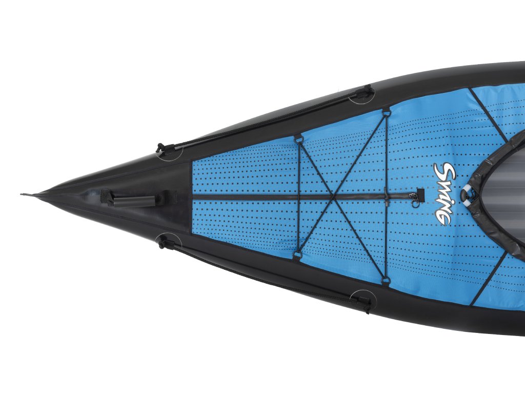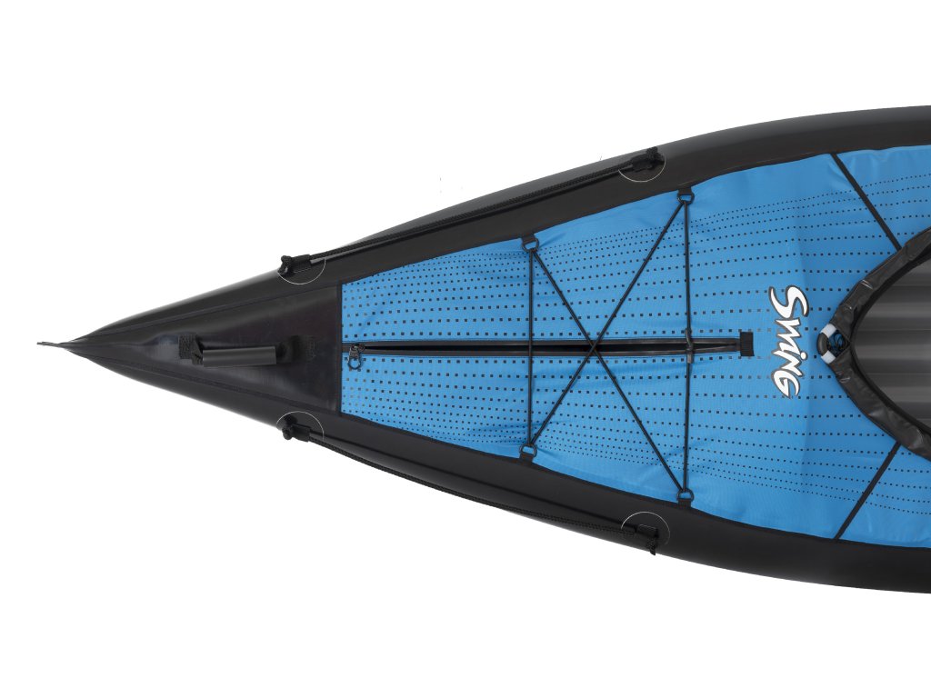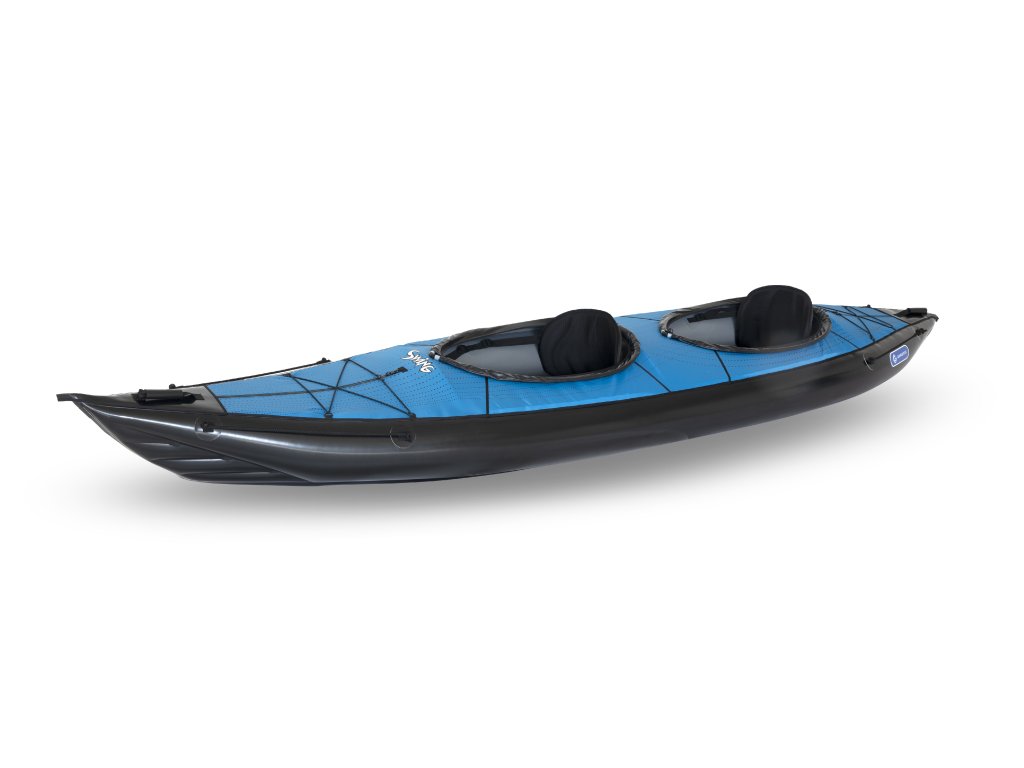 Swing 2 je ideálnou voľbou pre páry alebo priateľov, ktorí hľadajú rýchly a ľahký nafukovací kajak. Uzavretá paluba s integrovanými zipsami chráni posádku a náklad pred nepriazňou počasia a striekajúcou vodou. Vďaka svojej dĺžke a aerodynamickému tvaru kĺže po vode oveľa ľahšie ako širšie otvorené modely.