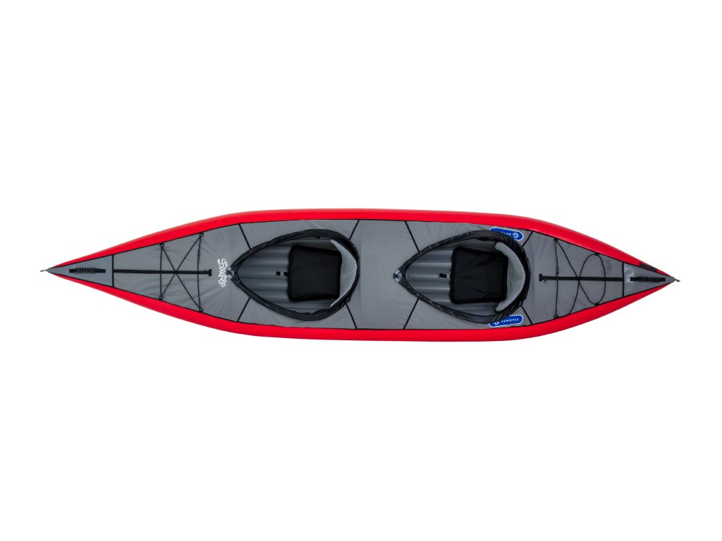 Gumotex Swing 2 (402 × 87 cm, 14,3 kg, nosnosť 220 kg) je uzavretý dvojmiestny kajak určený na rekreačné pádlovanie a turistiku. Vďaka nízkej hmotnosti a stabilnému trupu je vhodný aj pre menej skúsených vodákov, ktorí hľadajú pohodlnú, bezpečnú a ľahko ovládateľnú loď na výlety po pokojných riekach, jazerách alebo morských zátokách. Výstuhy v konštrukcii zabezpečujú dostatočnú tuhosť a smerovú stabilitu, čo prispieva k príjemnému pocitu z jazdy aj vo dvojici. Samozrejmosťou je jednoduchá manipulácia a rýchle zbalenie do prepravného vaku.