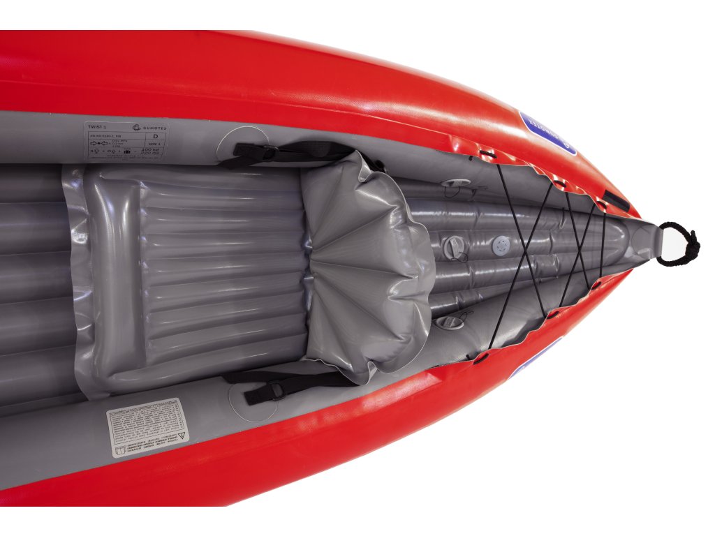 S nosnosťou100 kg twist 1 je určený pre jedného dospelého vodáka. Vnútorný priestor ponúka dostatok miesta na pohodlné sedenie a za sedadlo možno pripevniť malú vodotesnú tašku s najdôležitejším vybavením.