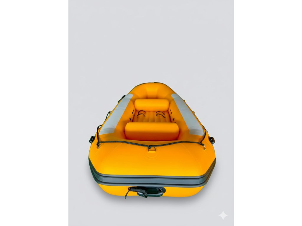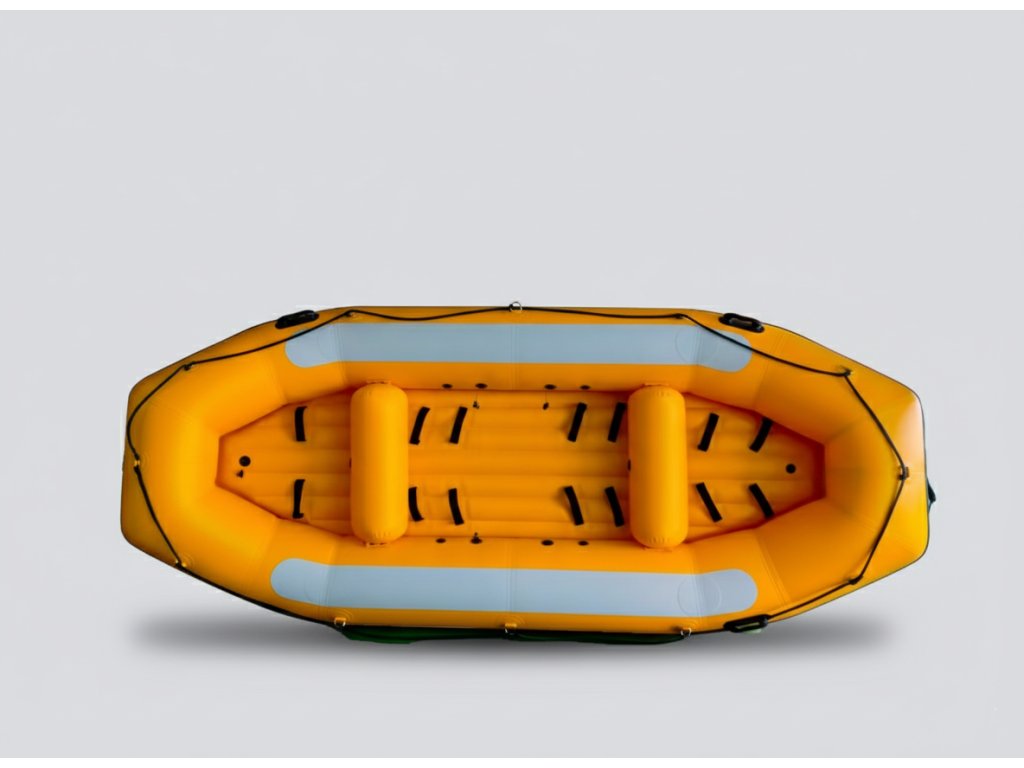 Vďaka symetrickej segmentovej konštrukcii spája raft vynikajúcu stabilitu s dostatočnou rýchlosťou a nosnosťou. Dĺžka 420 cm umožňuje pohodlnú plavbu aj pri plnom zaťažení a zvyšuje smerovú stabilitu na dlhších úsekoch. Predné hrany valcov uľahčujú manévrovanie a zvyšujú odolnosť dna voči opotrebovaniu. Vďaka optimálnej šírke 185 cm si posádka užije bezpečnú jazdu aj v náročnejších perejách.